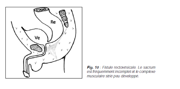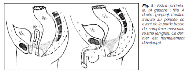 Il existe aussi des formes exceptionnelles type sans fistules, atrésie rectale, fistule en H.